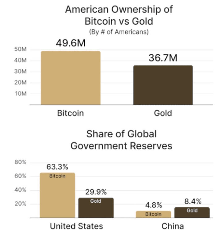 49,6 milhões de americanos possuem Bitcoin. 36,7 milhões possuem ouro.