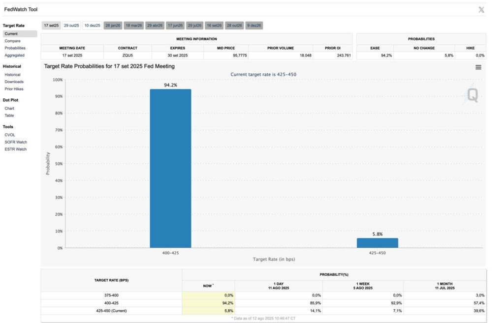O mercado já está precificando 94% de chance de corte em setembro.
