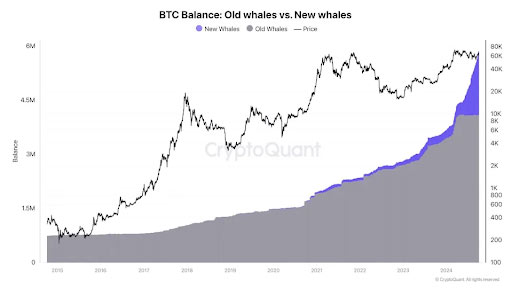 Em roxo, podemos notar o gráfico um crescimento muito relevante em “novas baleias” no Bitcoin.
