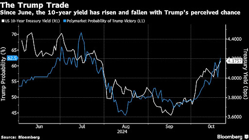 Nas últimas semanas, Trump começou a subir forte nas pesquisas e, como ele, subiram também os mercados.