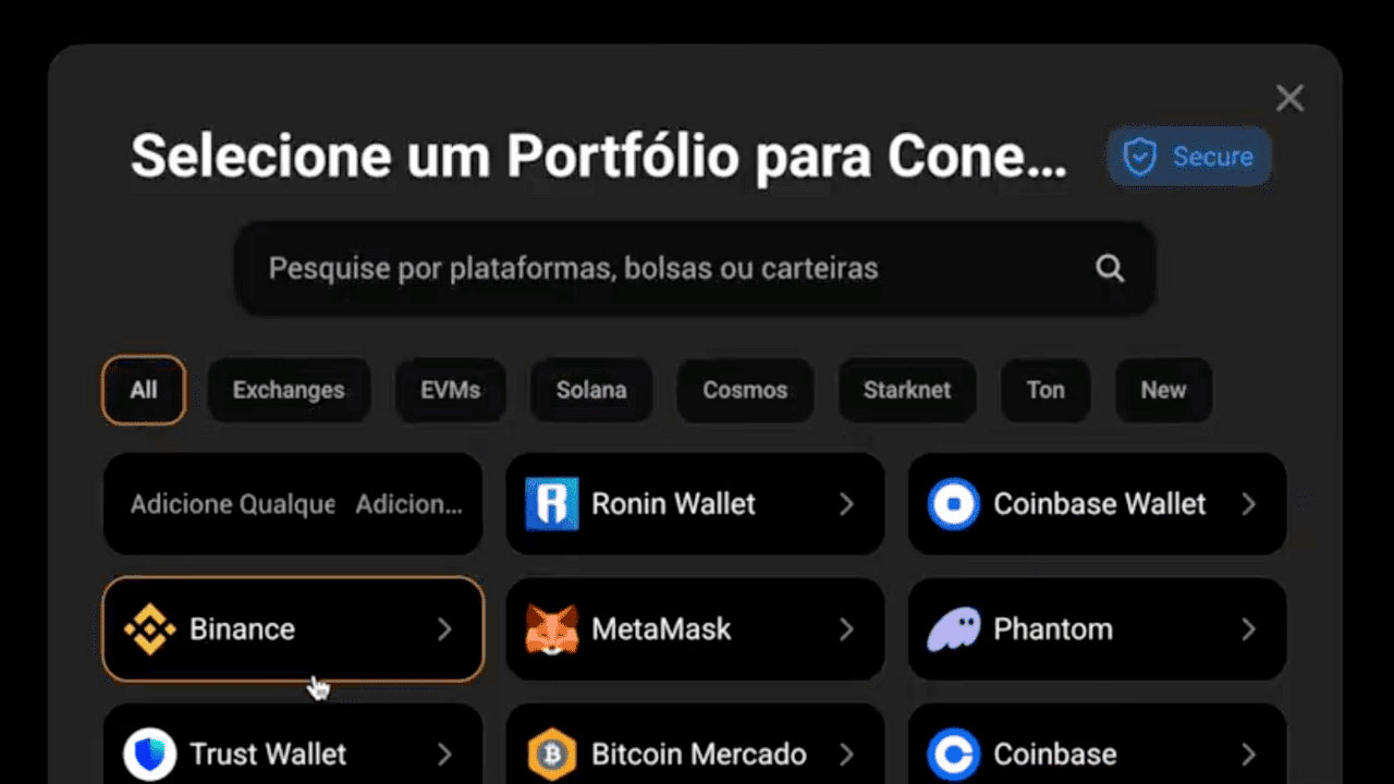 Não é só mais um tracker de preços, é uma ferramenta que conecta suas carteiras e exchanges automaticamente, te dando uma visão 360° do seu patrimônio cripto.