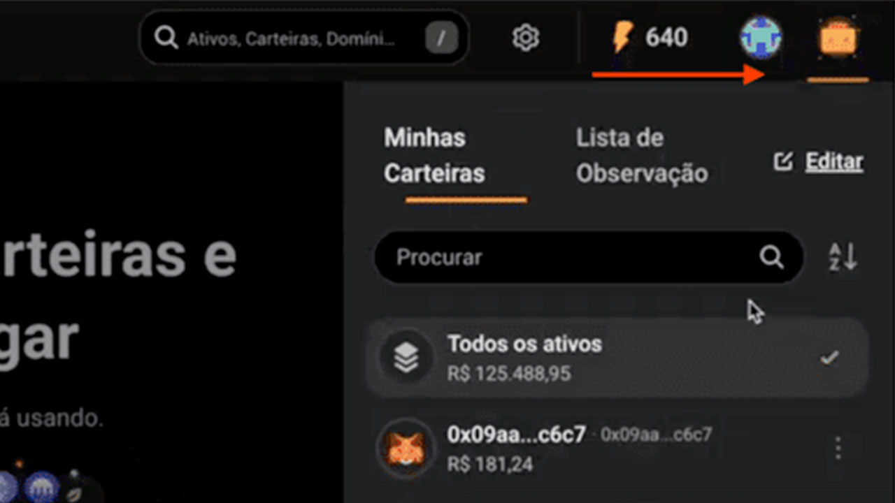 Uma vez que você fizer essas conexões, no canto superior direito do site, você vai ter todas as suas carteiras organizadas: