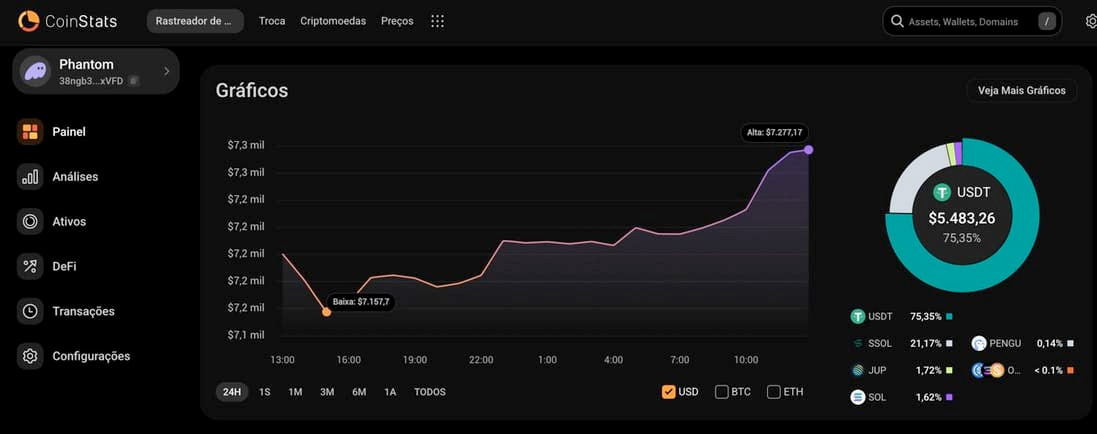O que mais gosto no CoinStats é poder ver instantaneamente a distribuição do meu portfólio.