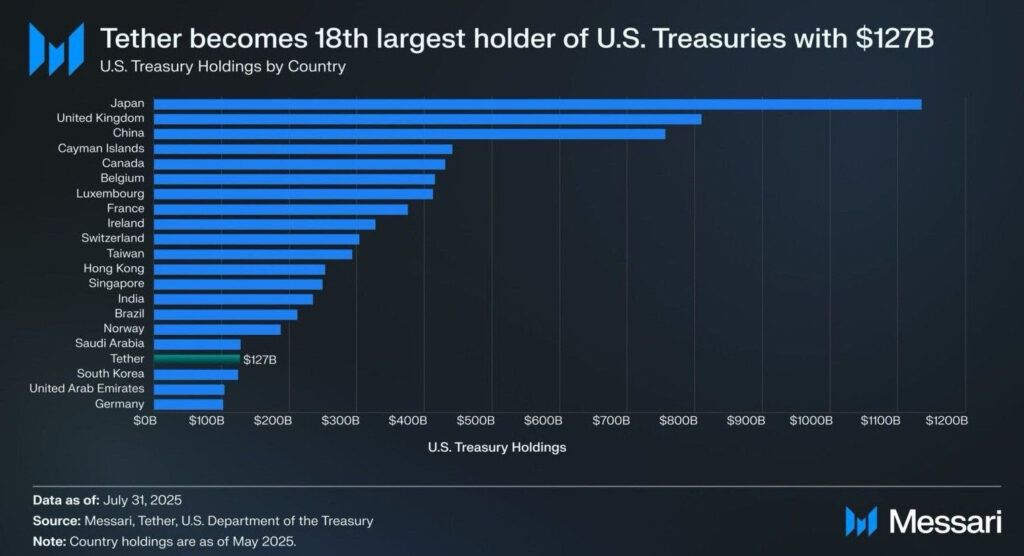 A Tether sozinha já é o 7º maior comprador de títulos do Tesouro americano, superando países inteiros.