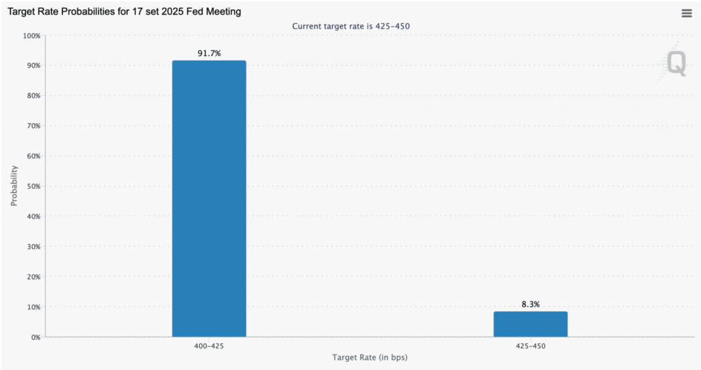 E, neste momento, 91% dos traders estão apostando em corte de juros para setembro.