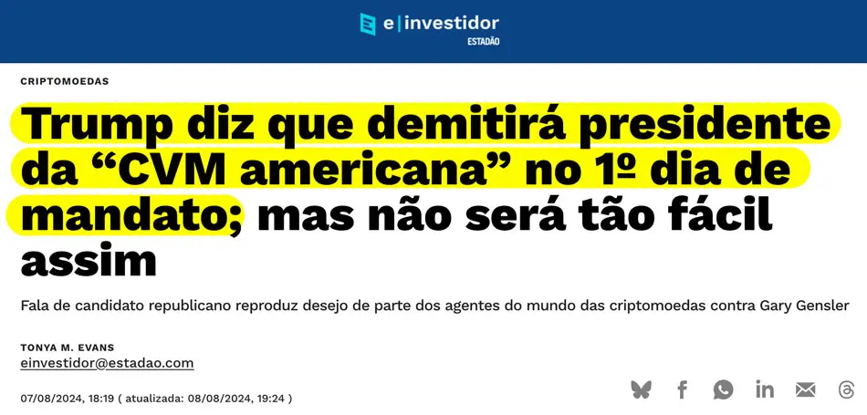 A renúncia de Gensler está diretamente conectada aos resultados das eleições nos Estados Unidos. Donald Trump, durante uma conferência em julho, prometeu demitir Gensler caso fosse eleito.