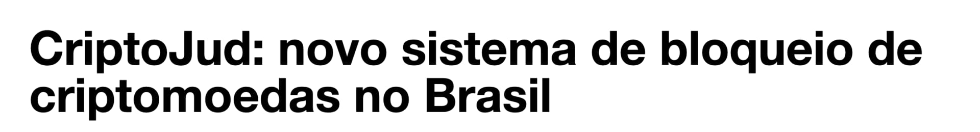 Uma plataforma que conecta o sistema judiciário diretamente às exchanges brasileiras. Um juiz emite ordem de bloqueio, o sistema conversa com a corretora, os ativos são congelados.