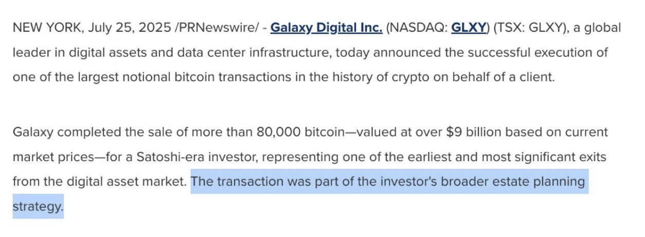 A Galaxy Digital intermediou toda a operação e foi transparente: não foi uma venda desesperada no mercado aberto.