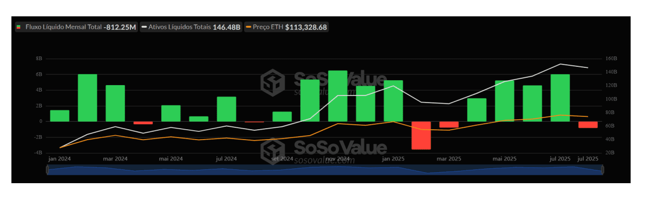 Os ETFs de criptomoedas nos EUA captaram US$ 12,8 bilhões em julho, o melhor mês já registrado.